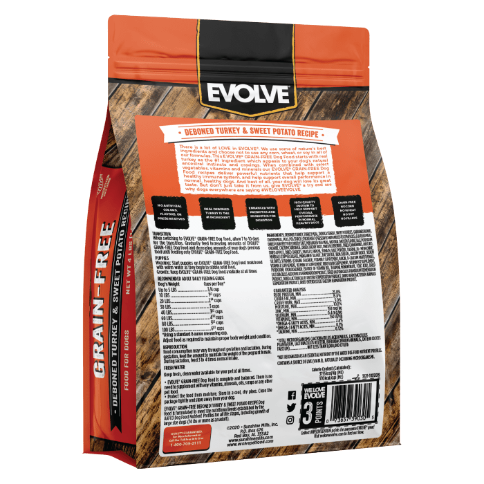 - Las fórmulas Evolve Grain Free incluyen carbohidratos complejos fáciles de digerir.